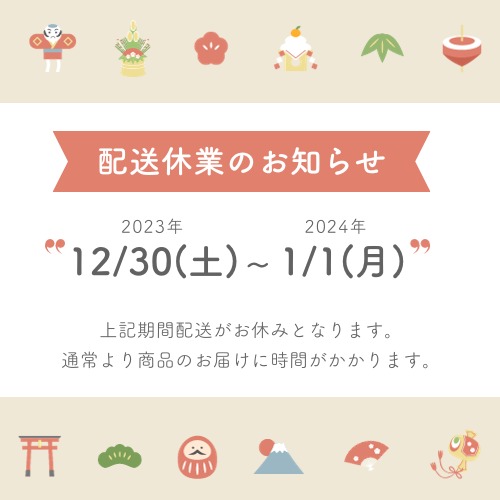 配送休業期間:2023年12月30日(土) ~2024年1月1日(月)